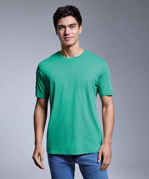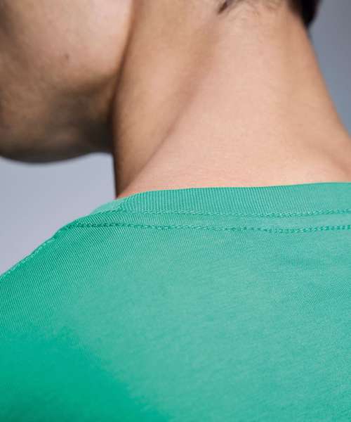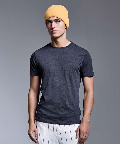 An iconic t-shirt with a retail fashion fit, incredibly soft-feel finish and the ultimate ribbed crew neck. Choose from a cast of incredible colours from solid shades in 100% organic cotton to marls in 60% organic cotton and 40% polyester. All with chain stitch detailing on the shoulders and nape of the neck, twin-needle stitching to the hem and cuffs, and a self-coloured size pip. Wear it to perfection.